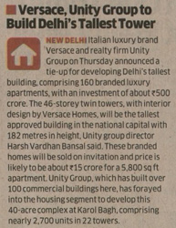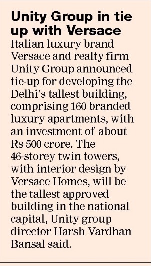 Versace, Unity Group to build Delhi's tallest luxury apartment tower for Rs 500 cr