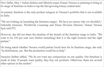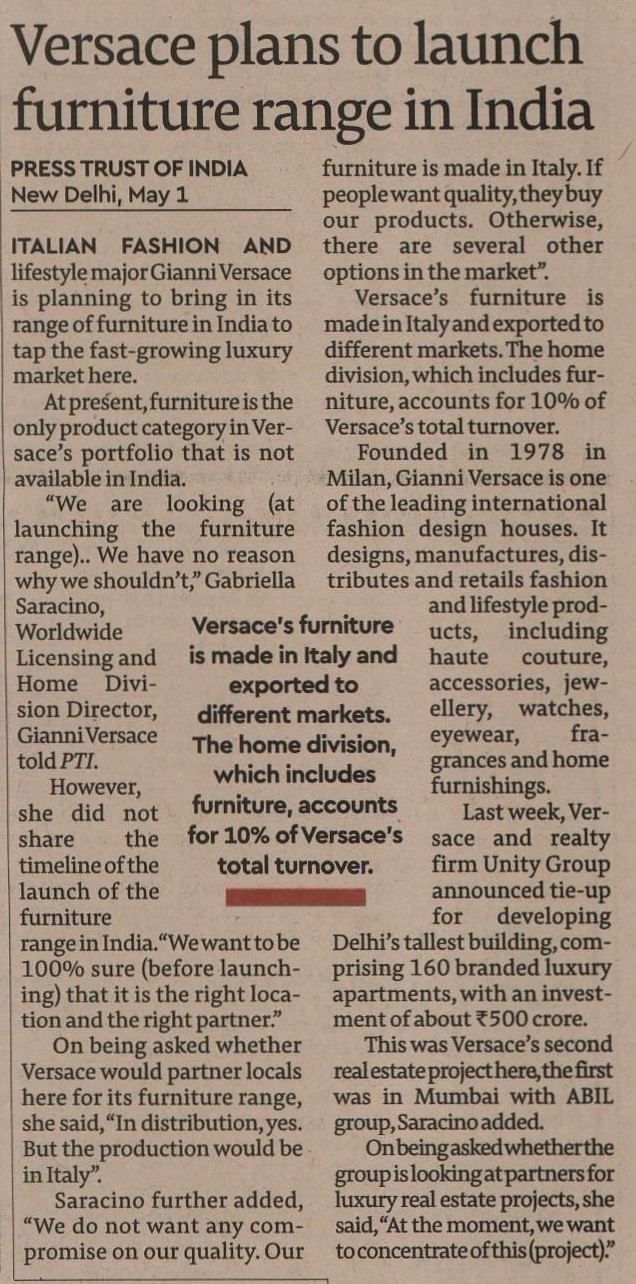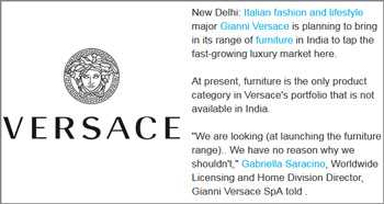 Versace plans to launch furniture range in India