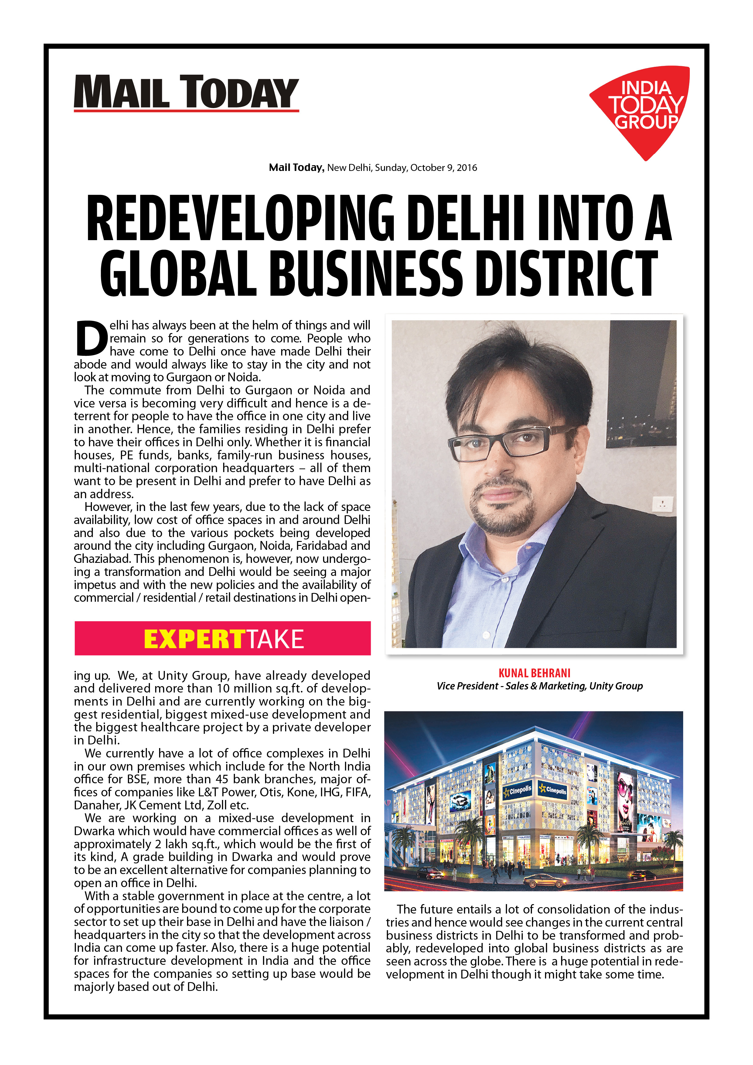 Mr. Kunal Behrani - Mail Today Coverage